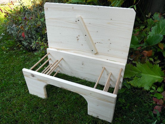 Das Heu kann bei geöffentem Deckel von oben in die Raufen gefüllt werden.
