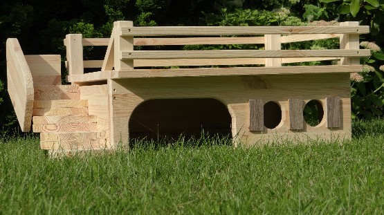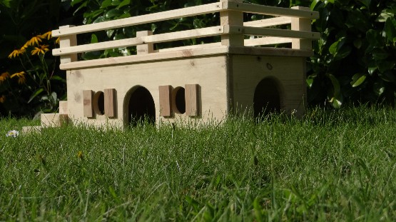 Durch das abnehmbare Dach können die Tiere behutsam aus dem Ferienhaus herausgehoben werden oder man kann gut nach dem rechten im Hausinneren sehen.