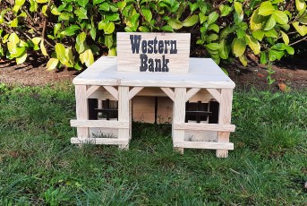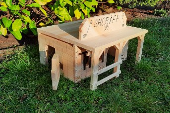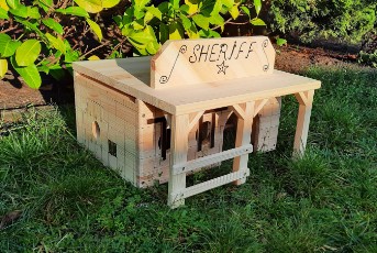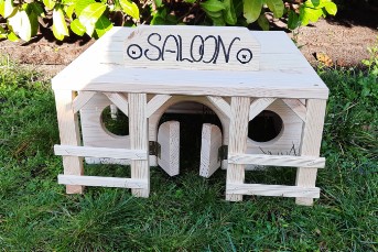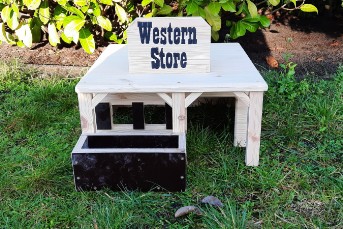 Dieser im Westernstyl angedeutete "Abort" kann als Futter / Heuraufe / Napf / Spender verwendet werden