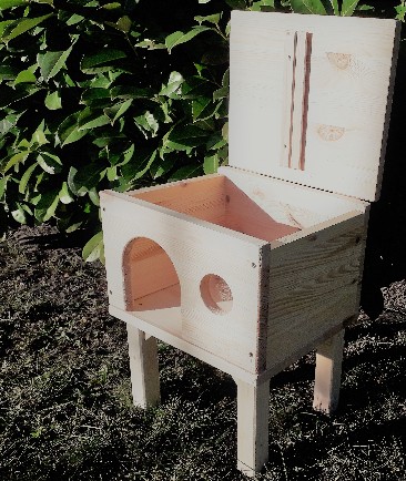 Dieser Hochsitz hat die Aussenmaße 30cm x 25cm x 18cm hoch.