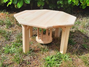 - Bei der Variante mit Heubefüllung kann zum befüllen eine Strebe herausgezogen werden