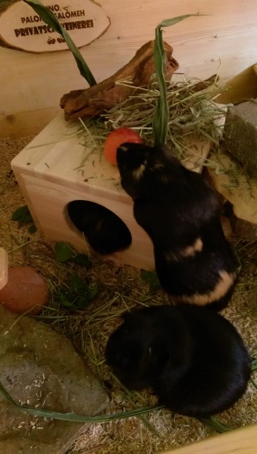 Die Einwohner können ihr Futter auf dem Dach oder im Haus einnehmen.