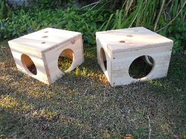 Zusätzlich haben die Immo Würfel im Dach 3 Stück Bohrungen erhalten. Hier kann das Futter, wie Gurke, Wurzel oder Heu, eingesteckt werden.