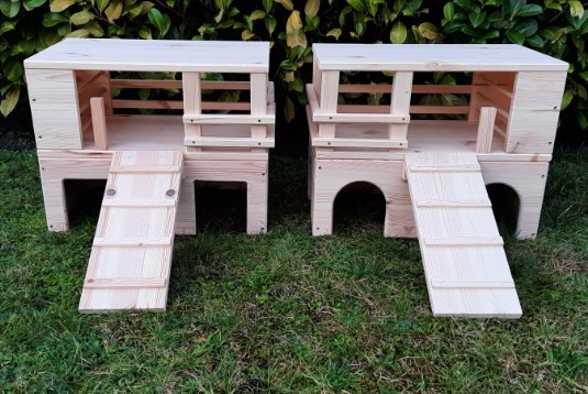 Es gibt diese besondere Immobilie für Meerschweinchen mit eckigen und mit runden Tür Ausschnitten