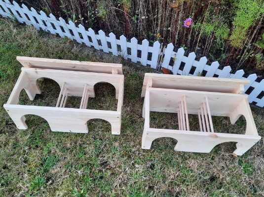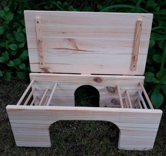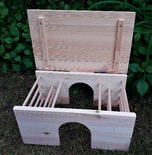 - Das Heu kann bei geöffnetem Deckel von oben in die Raufen gefüllt werden.