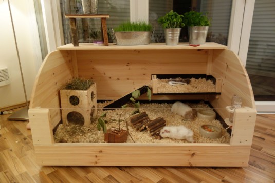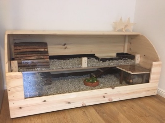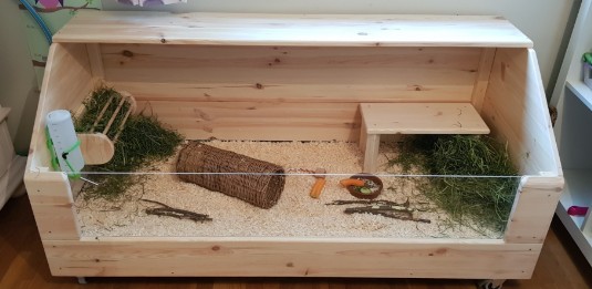 Die Innenseiten der Wände werden einmalig mit umweltfreundlichem, farblosen Parkettlack gestrichen, um das Eindringen von Urin zu vermeiden.