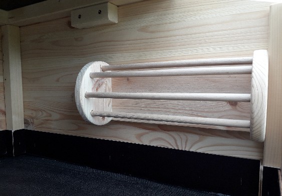Wenn die Raufe an der Wand befestigt wird, haben die Bewohner mehr Platz zum laufen.