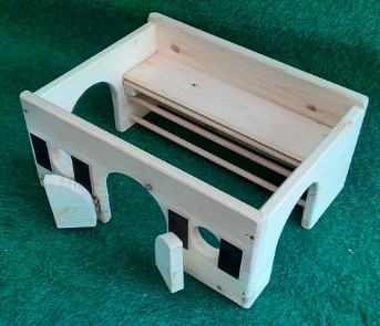 Hier können die inhaftierten Meerschweine durch den eingearbeiteten Durchbruch ausbrechen